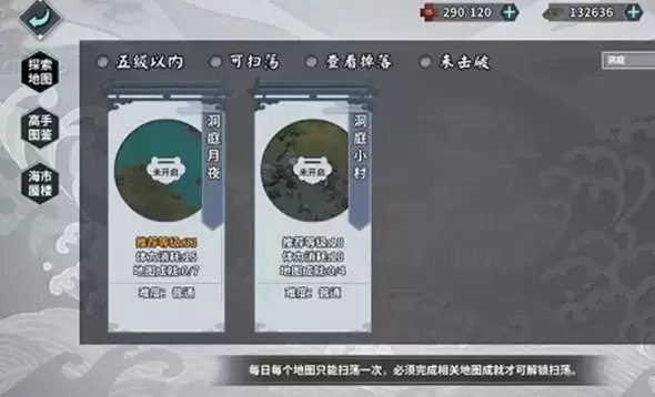 1、首先我们再扫荡探索中找到洞庭小村开启,推荐10级就能开启