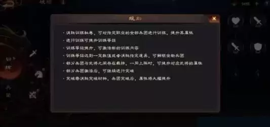 训练玩法,可以对指定职业的全部兵团进行训练,提升该职业下所有兵团的属性。同时进行训练还可以提升训练等级,当训练等级达到一定数值后,便可以解锁全新兵团。