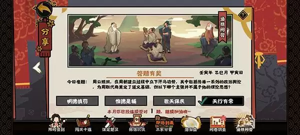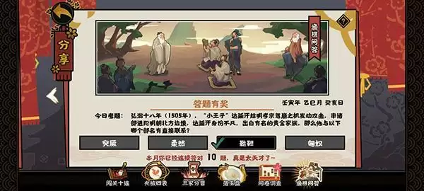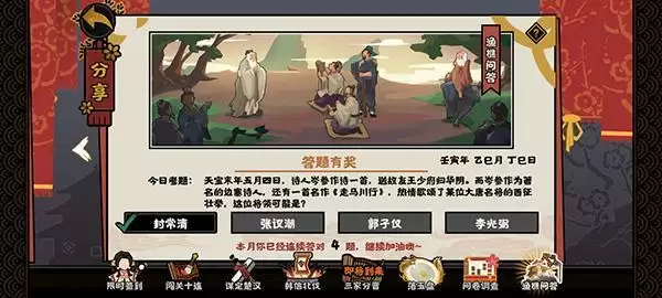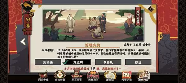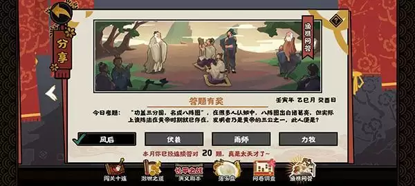 无悔华夏渔樵问答每天都可以参与答题获得奖励,不过有很多玩家对于历史的一些问题不是很清楚,这里整理了每天渔樵问答的正确答案提供给大家参考,持续更新为大家带来最新的攻略答案。