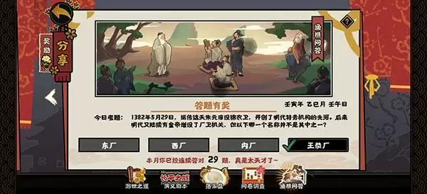 2022无悔华夏渔樵问答5月29日答案是什么,今天的考题是问明代皇帝增设了哪些场卫机关,对于这段历史可能有很多的玩家不是很了解,正确答案是王恭厂,那么感兴趣的玩家可以一起来了解下具体由来。