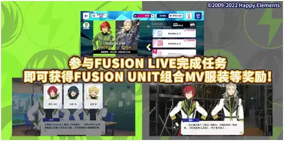 “Fusion”意为融合,全新的“Fusion”企划将14个组合两两配对,陆续开启一系列活动,用专属歌曲、活动故事、活动服装为玩家带来了全新的体验。