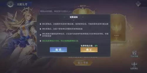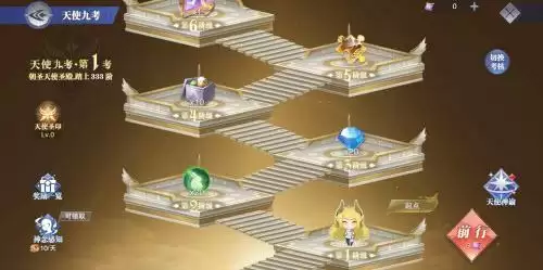 比如这里就先行选择了天使神作为考核神位,确认后便可以进入目前开启的第一考的内容,第一考就是333阶台阶,而登台阶则需要消耗这个各个神位的“圣谕”才行,获取圣谕的办法就是通过完成每日任务后即可开启,大家请务必先选神位,再做今天的日常!!