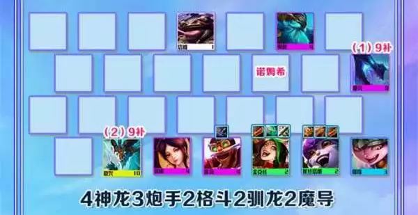 2、阵容羁绊:4神龙3炮手2格斗2驯龙2魔导+2幽影/4风暴龙