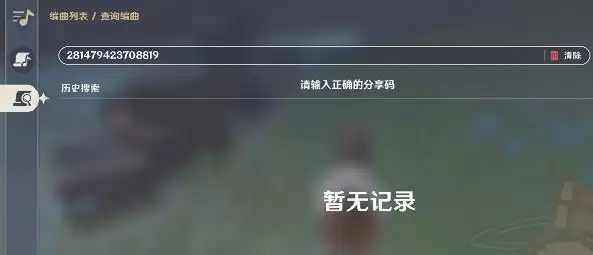 2.输入分享码之后可以查询编曲,如果输入了错误的分享码则不会显示出相关结果。