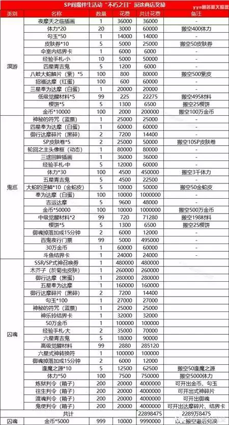 SP阎魔伴生活动“不朽之目”活动商店物品统计大全!