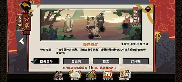 2022无悔华夏渔樵问答6月16日答案是什么,今日考题问的是“装尽乾坤并四海,任他宝物尽收藏”提到的宝物是什么,正确答案是混元金斗,感兴趣了解具体的由来的就一起来看下吧。