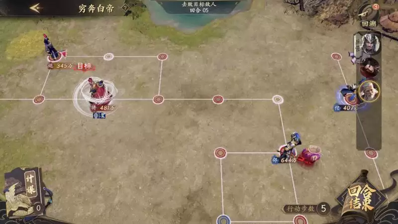 大概就是这样,依旧是第五回合,剩余行动步数5次,击杀战力降低到481万的boss直接通关。
