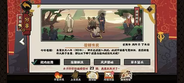 2022无悔华夏渔樵问答6月22日答案是什么,今日考题主要考研的是玩家对于相关成语的了解,相信大家对于答案中的成语并不陌生,那么对于问题提到的正确答案是什么呢,下面就一起来看下吧。