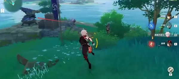 3、瞄准海岸边上的亮点,直接开炮就能解锁宝箱了。