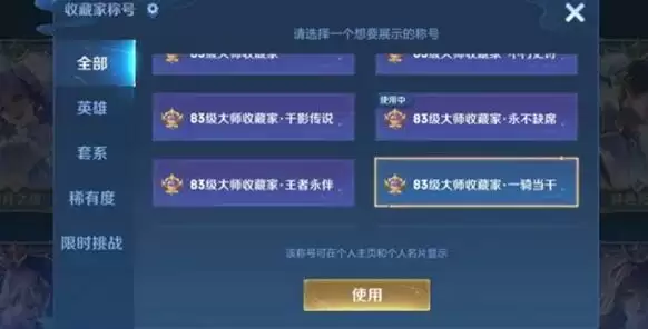 达成不同的收藏成就,会获得含后缀的收藏家称号,可以显示在个人主页及个人名片上;达成稀有的成就,其收藏家称号还可以在聊天系统展示。成就特权每周一0点更新。