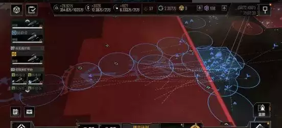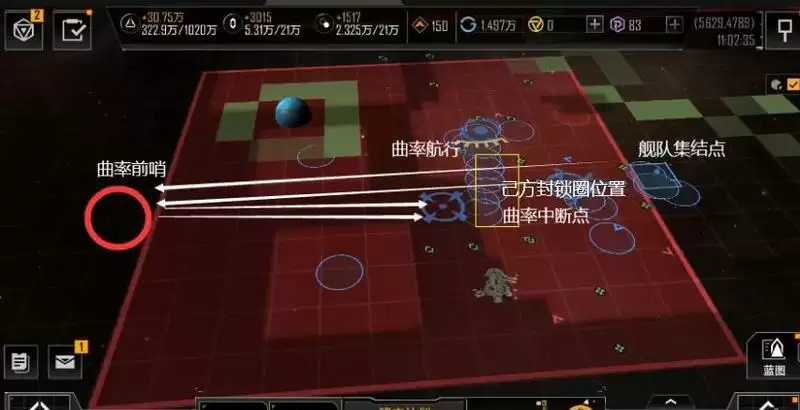 第一段移动到位后,我们就要开始第二段移动了,沿着箭头方向,移动至红色齿轮线位置,当我们的舰队会进入NPC城市的警戒范围,NPC城市会派出舰队对我们进行攻击,如图:
