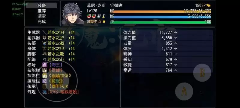 装备镶嵌的刻印统一为金之刻印,宝石统一镶嵌双闪宝石,所有宝石和刻印优先给主角,咖喱棒强化材料用的是十八相送(高级钓鱼商店能买),其余装备强化材料统一为七星灯和神仙笔。