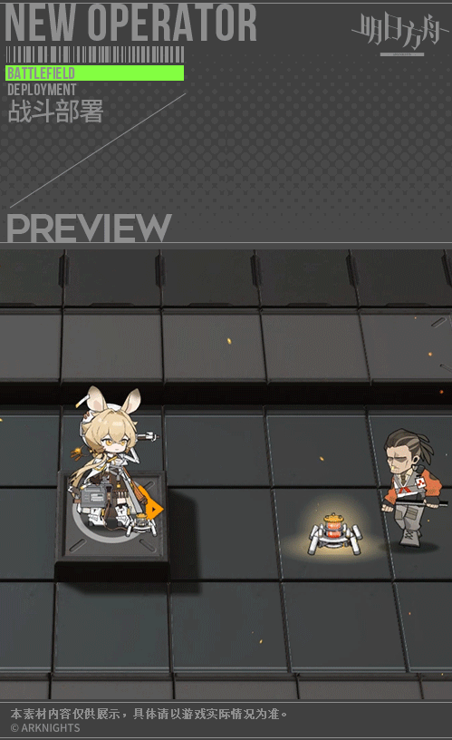 技能方面多萝西也属于大名鼎鼎的夹子帮,在部署之后会立刻在攻击范围内布置几个装置,对踩上去的第一个敌人造成效果,但是同样的也补不能在以及存在敌人的格子上放置。