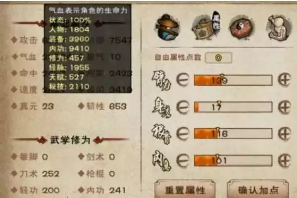 真气运行于四肢百骸产生内劲,攻击提升0.95X点