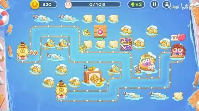《保卫萝卜4》梁波波与祝秋秋第90关高分速通攻略!本关地图中央水域面积较大,挑战性十足。以下步骤将助您轻松通关:《保卫萝卜4》梁波波与祝秋秋全关卡攻略合集通关技巧:开局策略:在左上