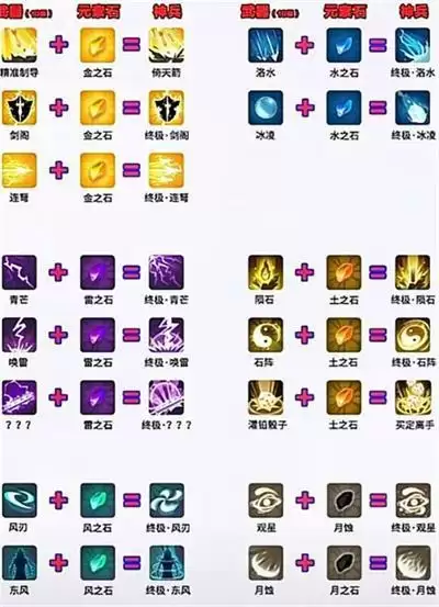 1.武器记得要升到10级,再加上相对应的元素时,最后开宝箱就可以合成神兵了。