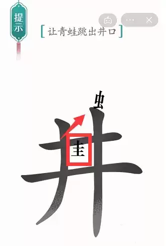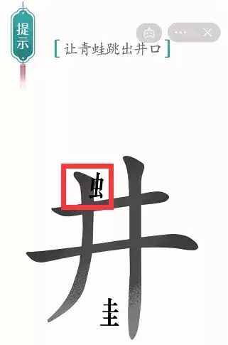 1、首先我们点击【蛙】字的【虫】,然后这个【虫】就会跳到井上。