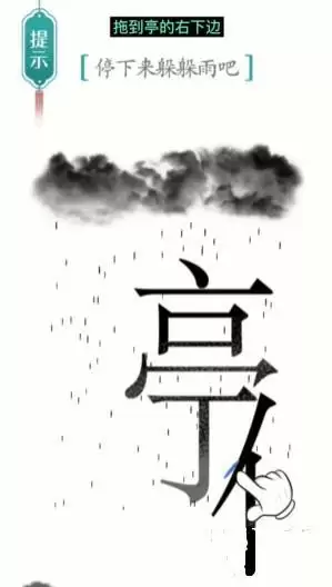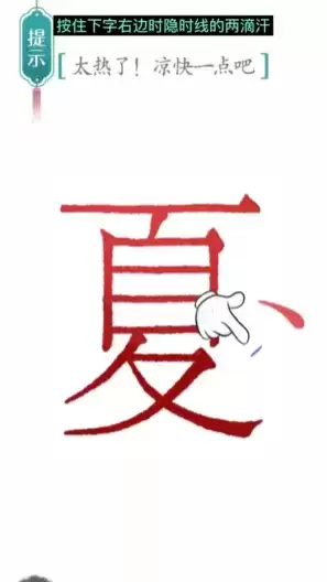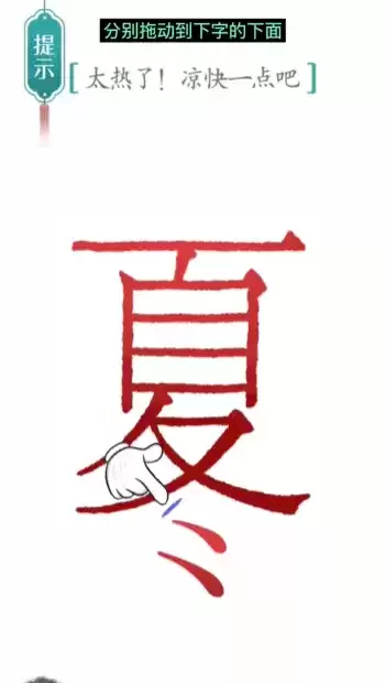 1、首先我们可以看到这个【夏】字在流汗,我们可以拖住这个汗水移动到【夏】字下面。