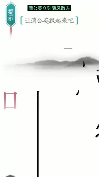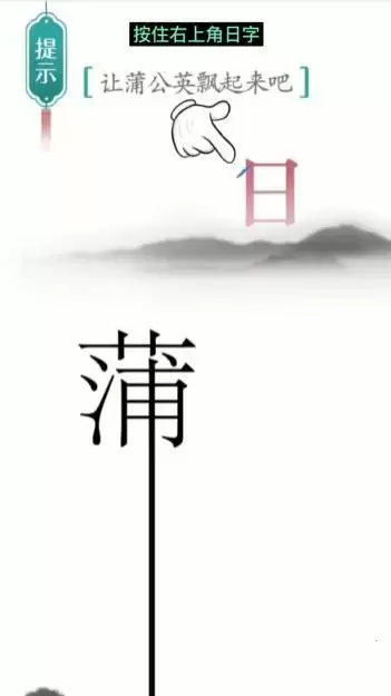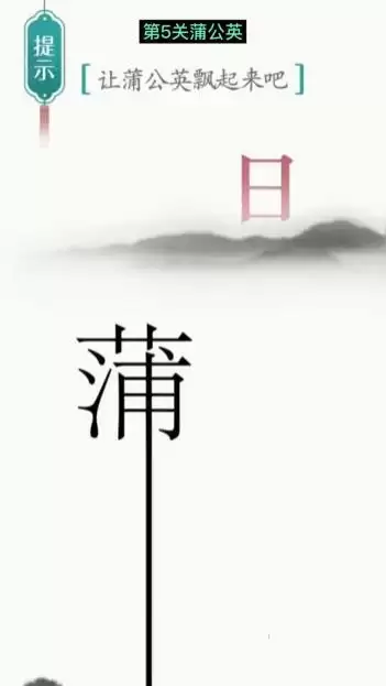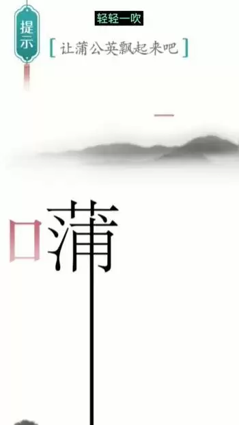 4、再把【口】放到【蒲】的左边,然后吹一口气把蒲公英吹飞。