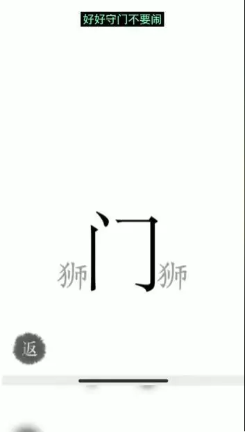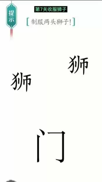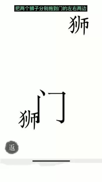 1、首先我们把一个【狮】字挪动到【门】左边。