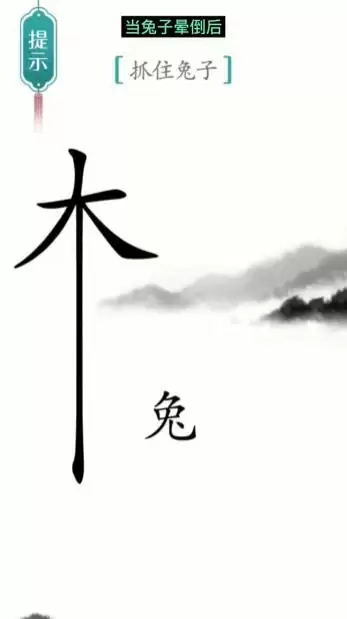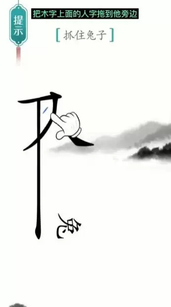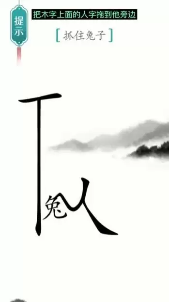 2、等它晕倒了之后我们把【木】上面的【人】拖到下面的【兔】上。