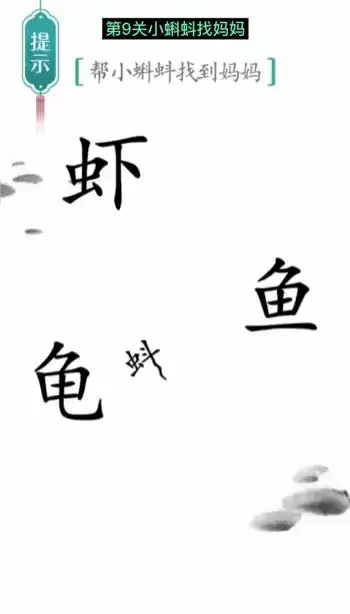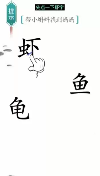 1、首先我们进入游戏之后发现图中只有【蚪】、【鱼】、【龟】和【虾】。
