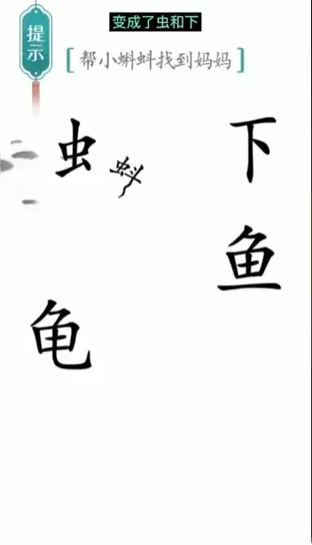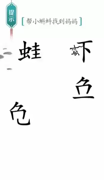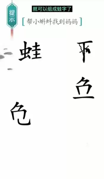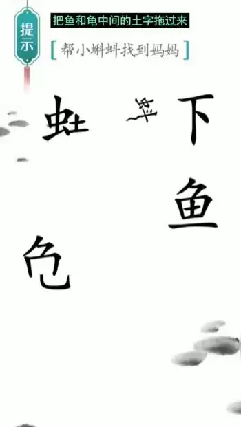 5、再把【鱼】里面的【土】也移动到【虫】右边,组成一个【蛙】。