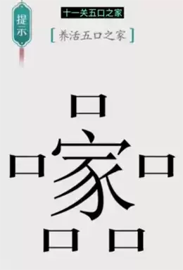 1、首先我们可以看到有5个“口”围绕着这个“家”,家字的下半截是可以进行拆解的。