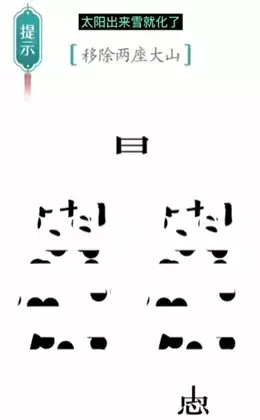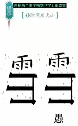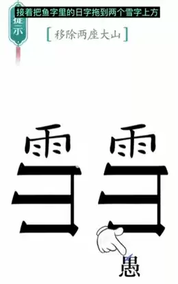 5、然后把“日”字拖动到两个雪字的上方,把雪晒化了之后就能成功过关啦~