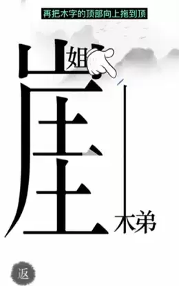 2、再把“弟”拖到“木”的右边,得到了一个梯子。