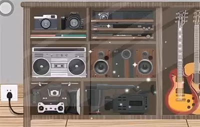 1.先把柜子打开,最右边的柜子东西拿出来,放入吉他。