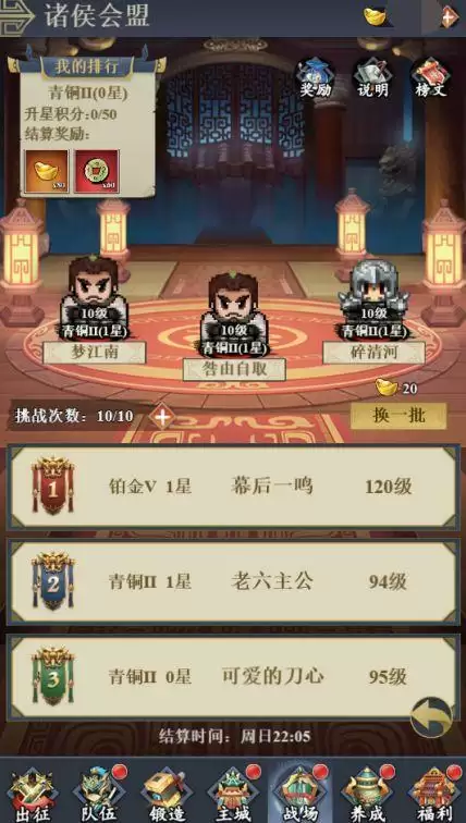 这个就比较考验个人能力了,祝主公们一路披荆斩棘过关斩将,勇夺头筹!