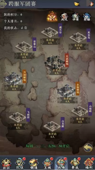 入口:主界面-战场-底部“竞技”-跨服军团战