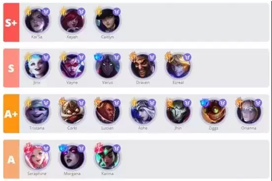 AD位上的变动就更小了,无外乎是韦鲁斯砍了Q的CD稍有英雄,而烬的小加强略有上升。然而韦鲁斯加强了W的被动伤害,手游却没有羊刀所以难以发挥;烬虽然加强了但吃不到海妖和致命节奏的红利,所以也难堪后期终结比赛的重任。
