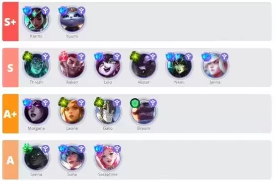 辅助位则几乎完全没有变动。值得关注的是E和R施法距离得到加强的蕾欧娜,不过目前新版本第一天,国内外的统计数据都没出来,所以强度也不好评价,其他英雄大家平时正常玩即可。