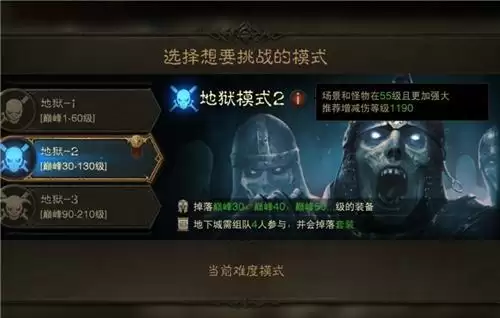 目前地狱模式一共分为三种难度,难度越高奖励越高,个人推荐还是从地狱1开始打,除非你是一身5星传奇宝石的氪金大佬,或者有大佬带你刷。