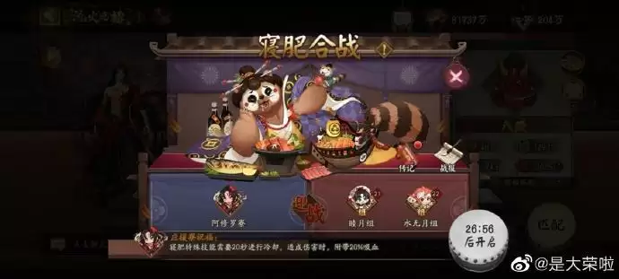 Tips:食材组的话用平时打阴界的铃彦姬体系or双拉群攻阵容都可以。