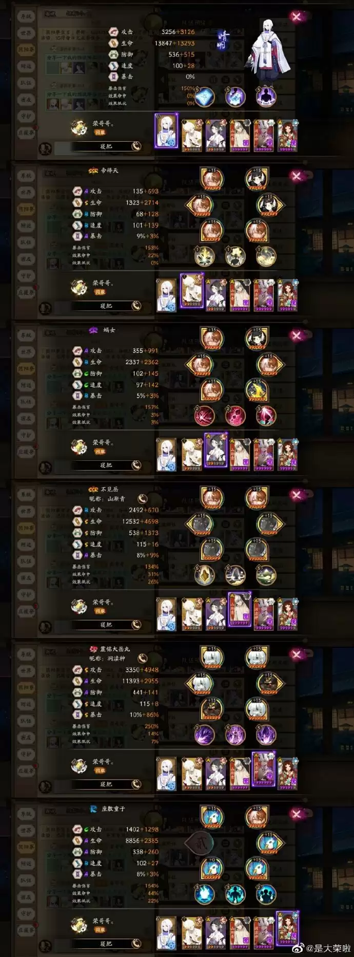 座敷童子:2星即可,被动大招满级,火灵。