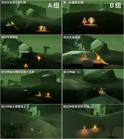 1、破晓季的暮土地区季节蜡烛会在两个地区刷新,玩家可以参考上图的A区后B区进行寻找。