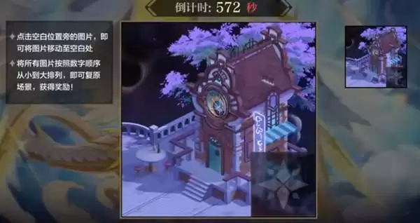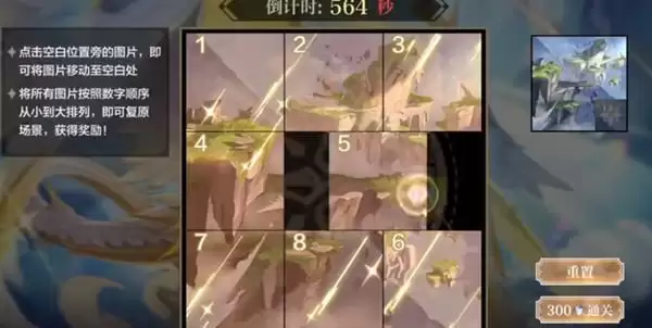 进入拼图关卡后,它有几秒时间的延迟才开始打乱拼图,你们在它打乱拼图之前直接按左上角的退出键,退出去之后在进来你们会发现拼图,系统已经帮你拼好了,之后你随便移动一块在移动回去就能直接通关了(就是一片拼图点两下)。