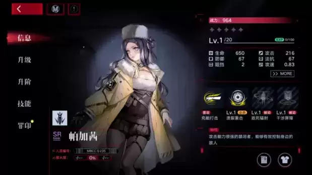 帕加茜:必杀为造成范围伤害并降低周围敌人移动速度,被动一为在自身范围内的敌人,每秒受到伤害,被动二为战斗开始时获得护盾。可AOE清兵兼职当个辅T。