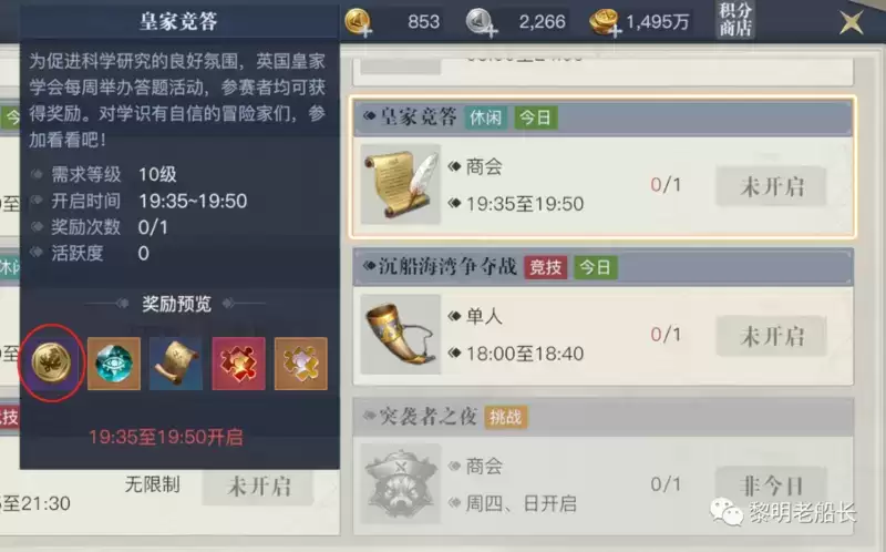 然后是活动,活动分成了物资征集、商会答题、商会宴席、商会联赛、突袭者之夜、商会投资等。