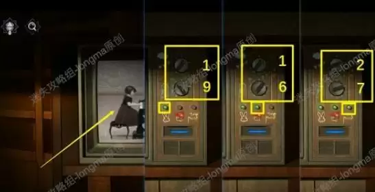 31.返回客厅,查看右边柜子上的照片,对照衣柜处看到的图案摆放后面的树,记住右下角出现的罗马数字。