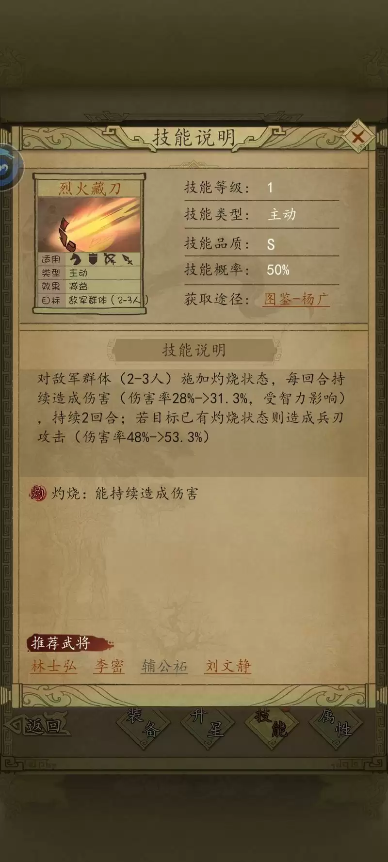 (值得一提的是,林士宏需要搭配烈火藏刀稳定触发自带战法)
