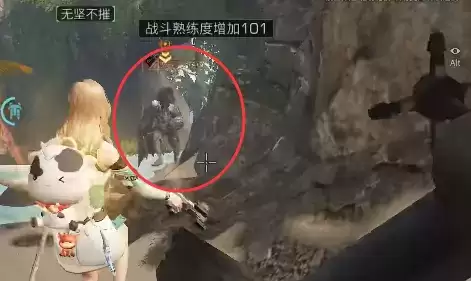 4、然后我们前往飞机坠落的位置,我们可以利用飞机机尾卡住boss然后安全输出,如图所示。