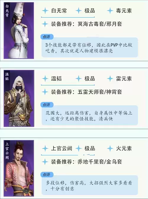 4、白无常:3个技能都是带有位移,因此在pvp中比较吃香,其次就是人物建模非常不错。