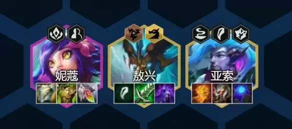 这套其实并不是新阵容,在之前版本就有这种玩法,但之前由于霞与韦鲁斯主C大热,特别是搭配符文强攻,对这套阵容相对克制,且敖兴是10费卡阵容成型难度比较高,热度一直不高就没有火起来。