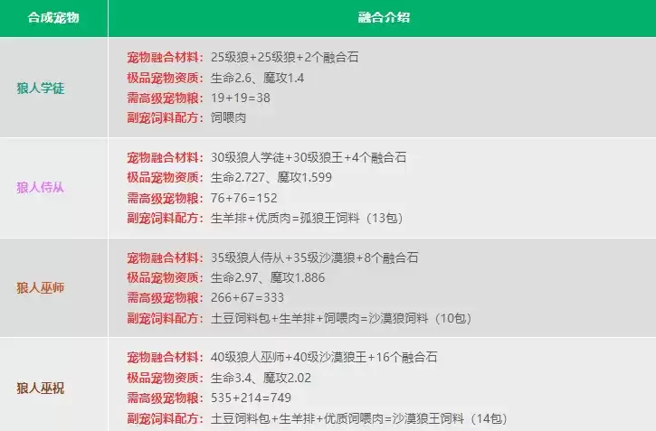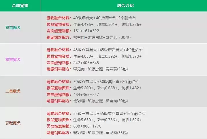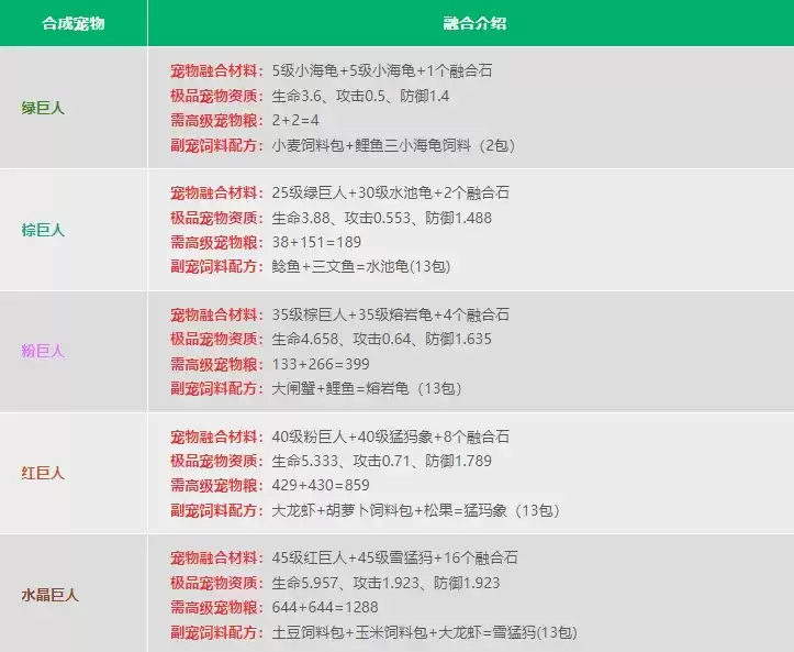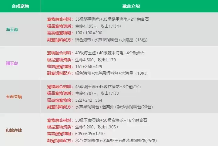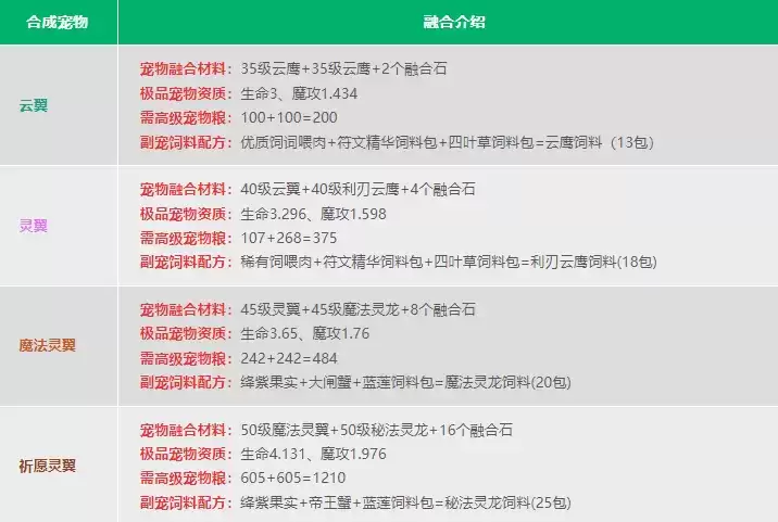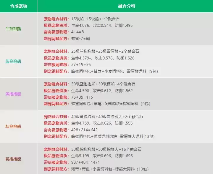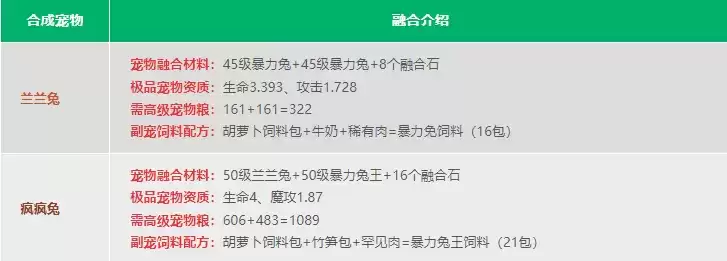 融合需要消耗:共 3590 包高级宠物粮。