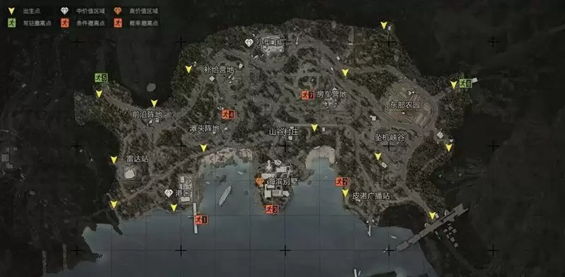 山谷:山谷地图的出生点分布较散,东西两侧各有7~8个出生点。
