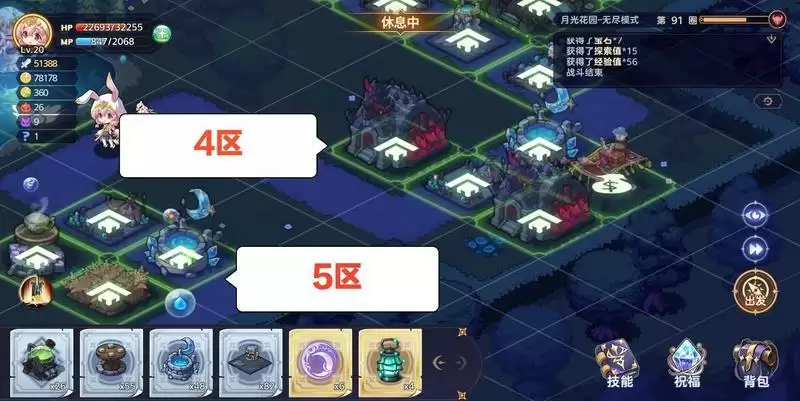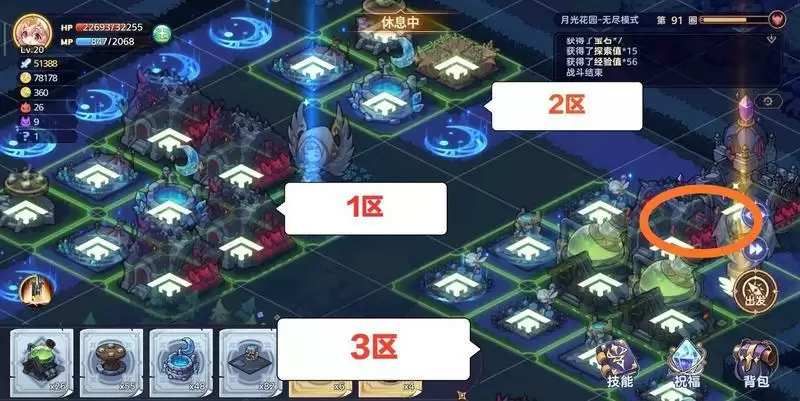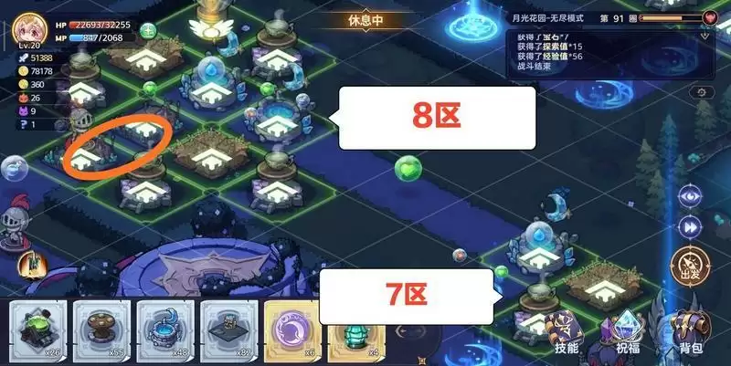 8区:6变异。前期可用马,中期(50-60圈)可改成如图产药。标注的2块区域前期可以用银月草过渡。